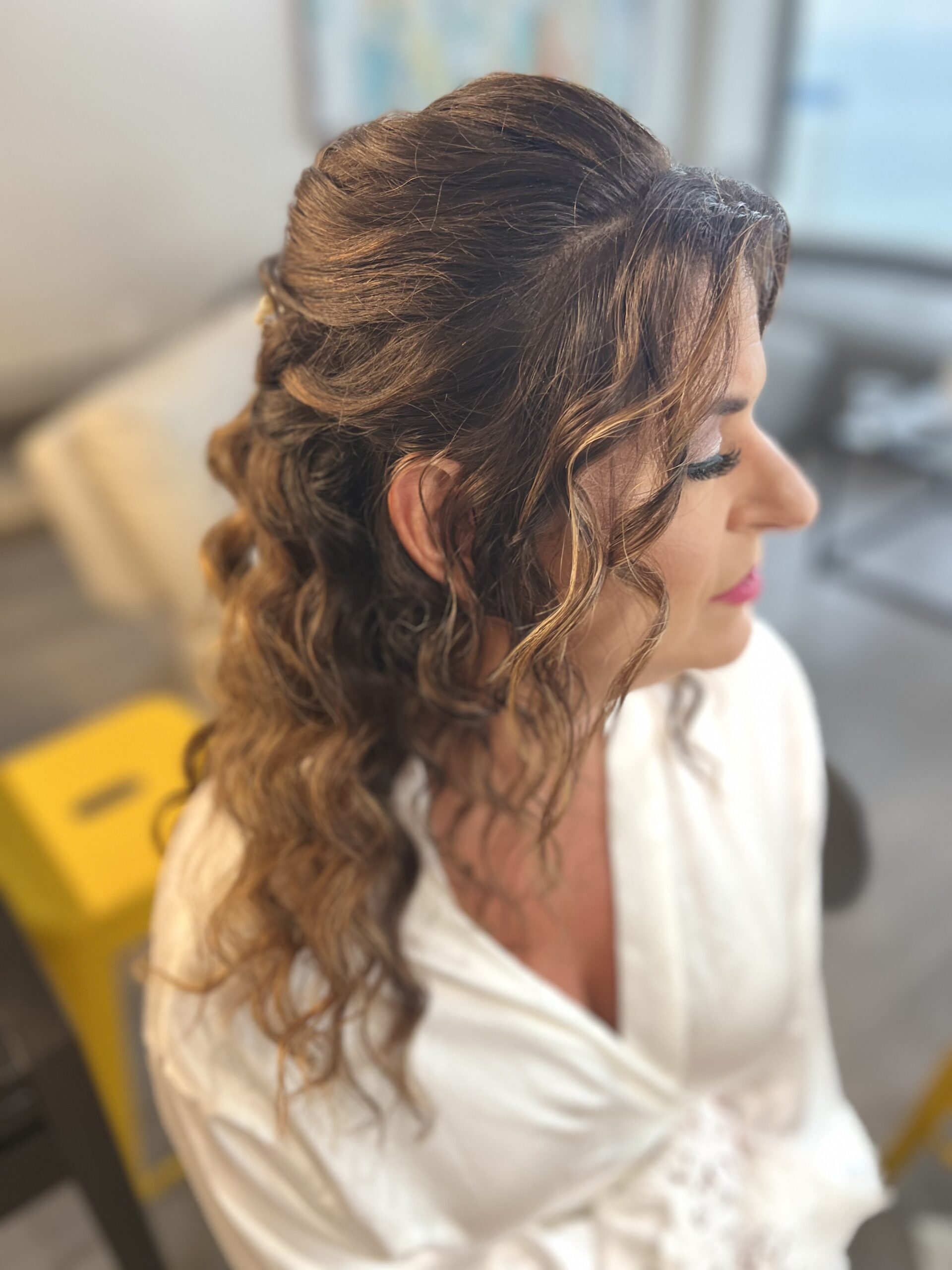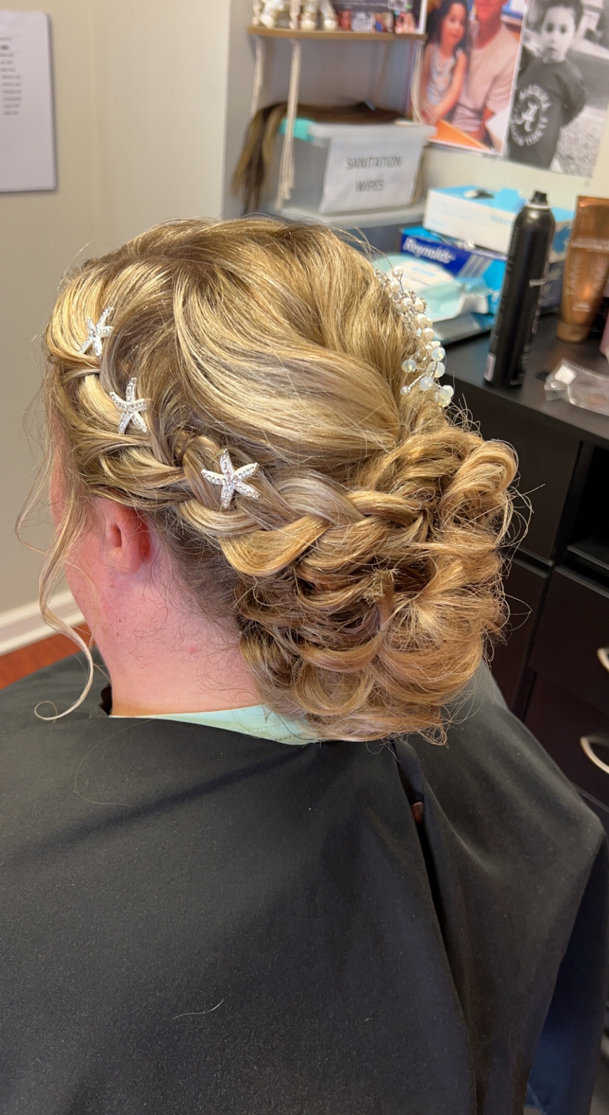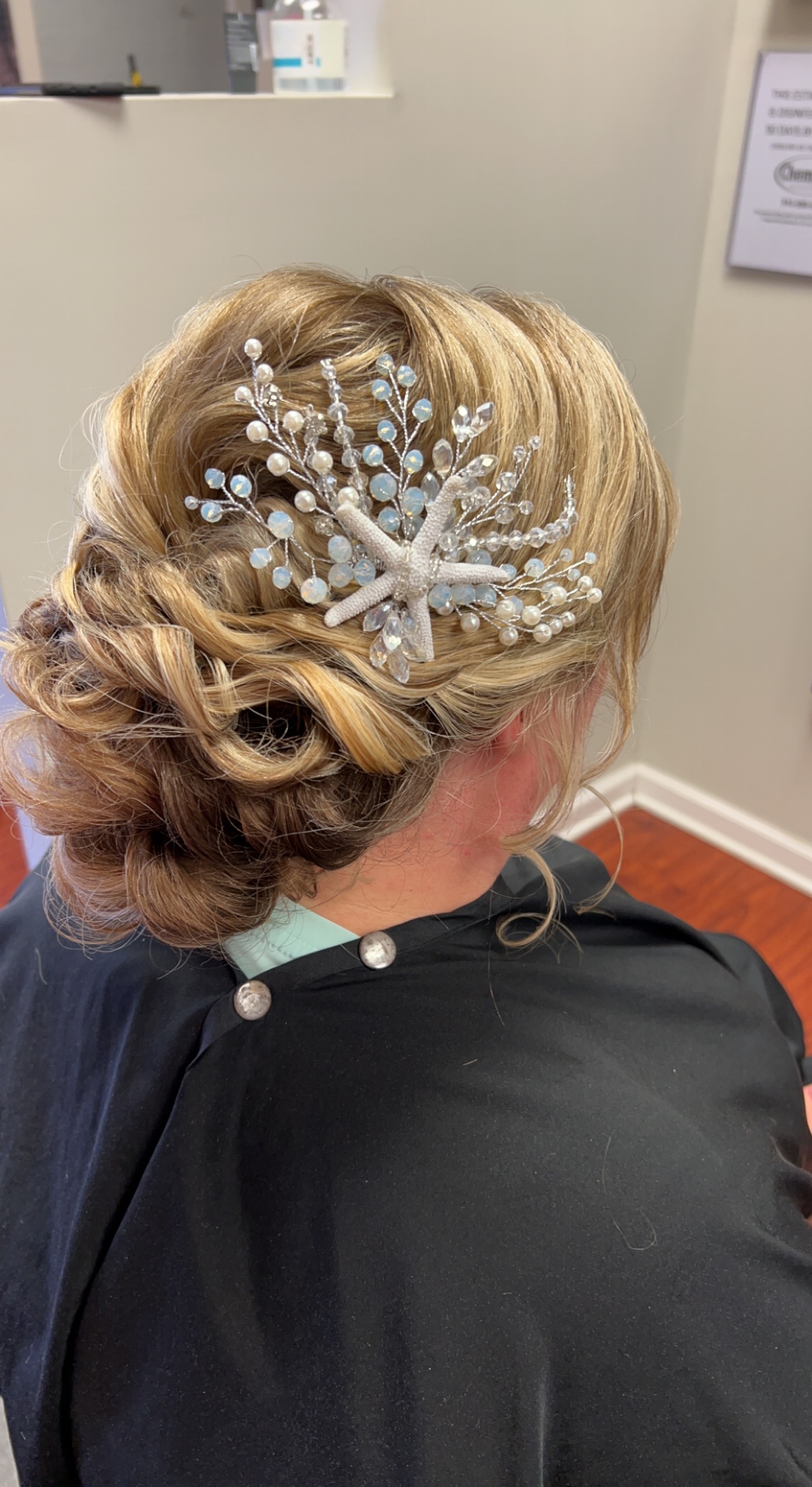 With over 30 years of hairstyling experience, We specializes in creating timeless, elegant, and long-lasting bridal looks that photograph beautifully and hold up through the Myrtle Beach breeze.